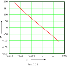 График изменения потенциала вдоль оси ОХ (при (R1 - h1) x (h2 – - R2)) показан на рис. 1.22.