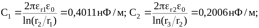 Емкость системы цилиндров на единицу длины определяется по следующей формуле: