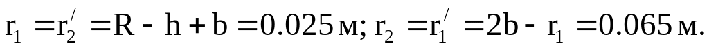 r1/ = (R1 + b - h1) = 0.0131м; r2/ = 2b - r1/ = 0.0381м;
