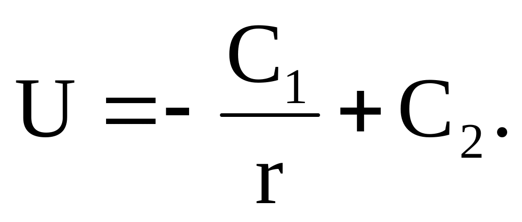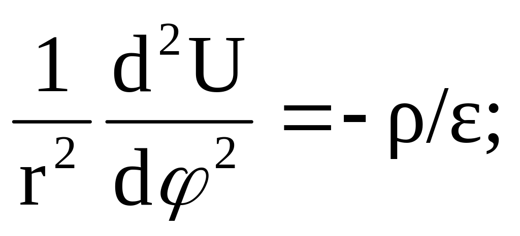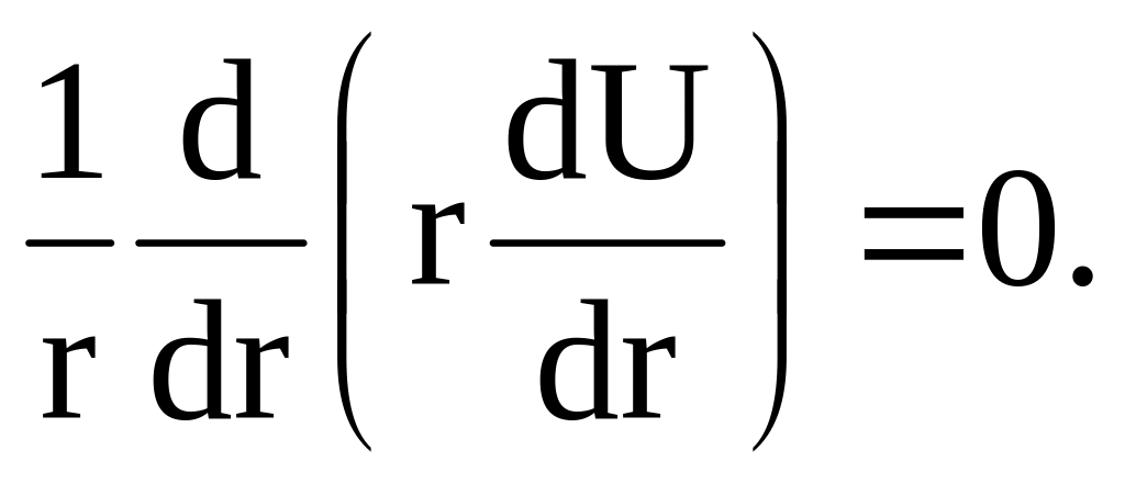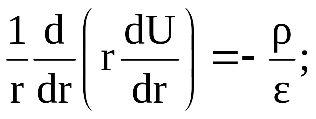 В цилиндрической системе координат для одномерного поля вид уравнения Пуассона или Лапласа и их решение зависят от того, функцией какой координаты является искомый потенциал U. Например, если потенциал U зависит только от радиальной координаты r (U=U(r)), то уравнения (1.11) и (1.12) будут иметь вид