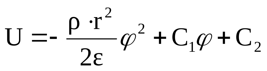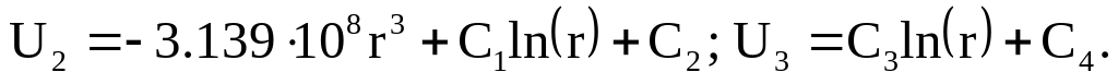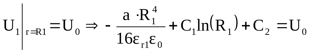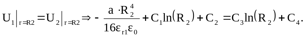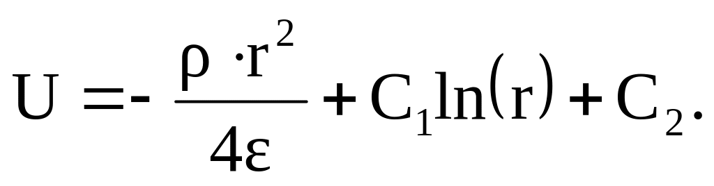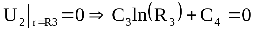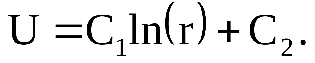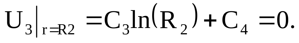 Примем потенциал равным нулю на наружной поверхности цилиндра (U2=0 при r=R2), тогда