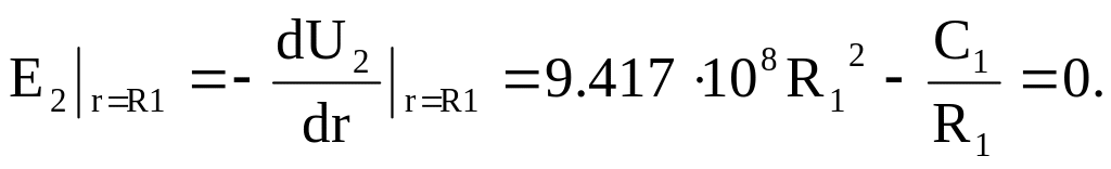 Постоянные интегрирования определим из граничных условий, которые можно поставить как из классических граничных условий, так и из следующих соображений. Поскольку поле внутри цилиндра отсутствует, то при r=R1, можно принять Е2=0.