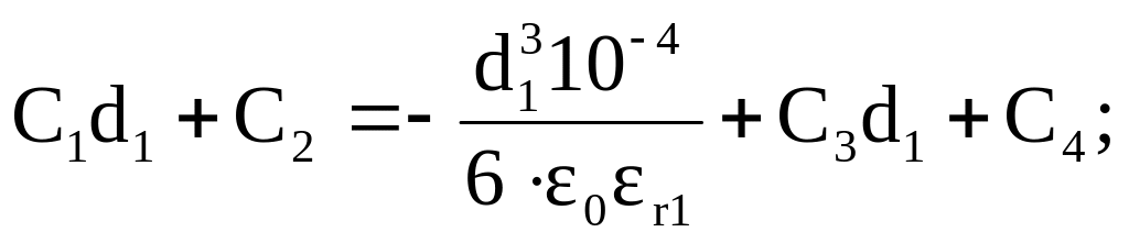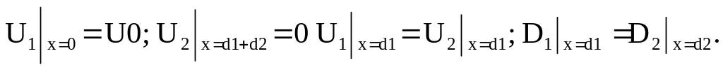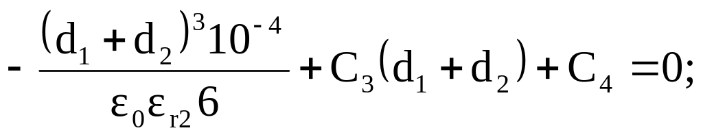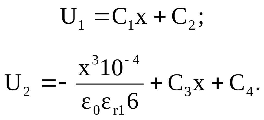Для определения постоянных интегрирования используем граничные условия на внешних границах области и на границе раздела двух диэлектриков (внутренней границе).