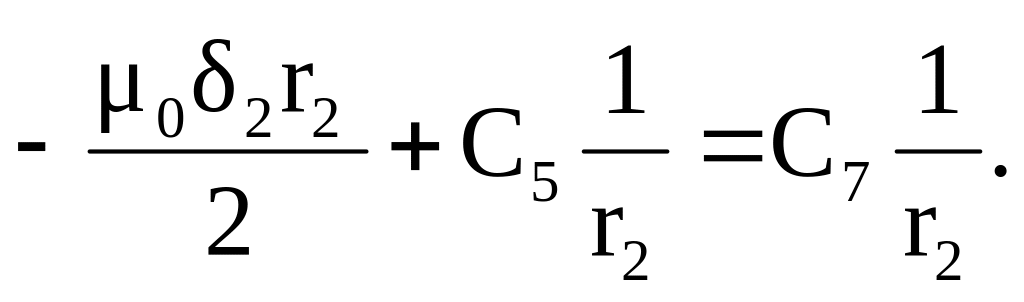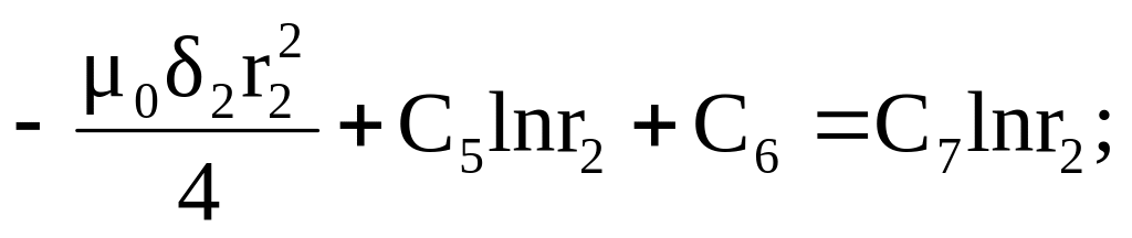 Слагаемое С1lnr должно отсутствовать, так как А не может принимать бесконечно больших значений при r = 0. Отсюда следует, что постоянная интегрирования С1 = 0. Векторный потенциал определяется с точностью до постоянной. Примем эту постоянную равной нулю: С8 = 0. Для определения оставшихся шести постоянных составим с помощью граничных условий систему уравнений. Эти граничные условия определяют равенство на границе раздела двух сред касательных составляющих напряженности поля и равенство векторного потенциала.