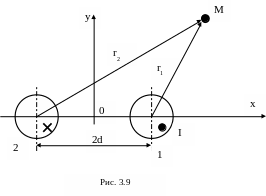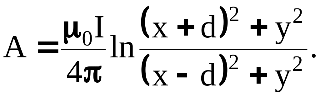 Используя данную формулу, запишем выражение для определения векторного потенциала в произвольной точке М (рис. 3.9) от двух проводов