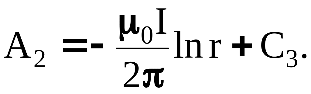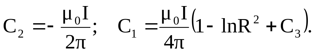 Постоянные интегрирования определяются из условий равенства на поверхности провода векторного потенциала (А1 = А2, при r = R) и его нормальных производных (dА1/dr = dА2/dr, при r = R)