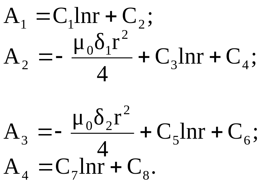 Интегрируя дважды по r, получаем выражения для потенциала для каждой подобласти: