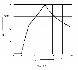 Отметим, что поскольку магнитная проницаемость во всей области одна и та же, то распределение магнитной индукции вдоль радиуса полностью повторяет распределение напряженности поля.