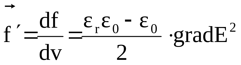 Объемная плотность механической силы, действующей на диэлектрик, равна
