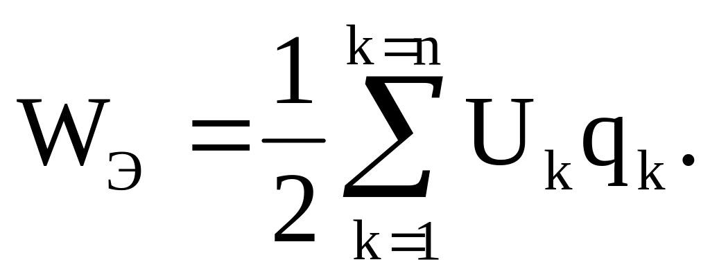 Энергия электрического поля, образованного системой n заряженных тел, имеющих потенциалы U1, U2,….Un и заряды q1, q2,…qn, определяется с помощью равенства: