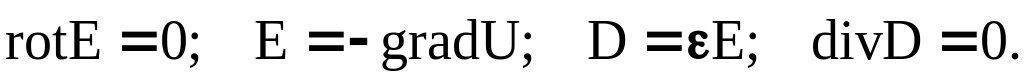 Если рассматривать поле только в области пространства вне источников ЭДС, то будет справедливо уравнение (1.3) и (1.4). Последнее позволяет сделать вывод о том, что вне источников ЭДС электрическое поле постоянных токов является, так же как и электростатическое поле, безвихревым. Такое поле является потенциальным, поэтому для его характеристики может быть введена функция координат U(x,y,z), называемая электрическим потенциалом, причем и в данном случае будет справедливо уравнение (1.7).