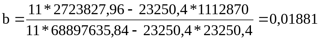 Таблиця 2.3 – Розрахунок параметрів лінійного рівняння регресії