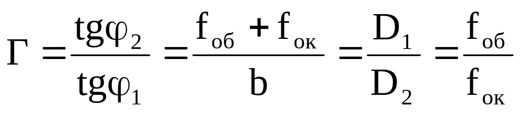 Тогда угловое увеличение микроскопа определяется по формуле: