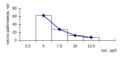 Если середины верхних сторон прямоугольников соединить прямыми, то гистограмма может быть преобразована в полигон распределения (рис.1).