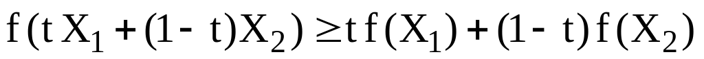 Означення 2. Функція , що задана на опуклій множині , називається вгнутою, якщо для будь-яких двох точок і довільного виконується співвідношення