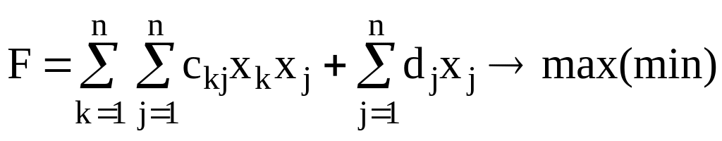 Розглянемо тепер задачу квадратичного програмування, яка є окремим випадком задачі опуклого програмування. Специфіка цієї задачі полягає утому, що система обмежень є лінійною, а цільова функція квадратичною.