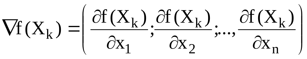 Припустимо, що відома точка Xk, яка належить області допустимих розв’язків. У даній точці обчислюємо градієнт цільової функції: