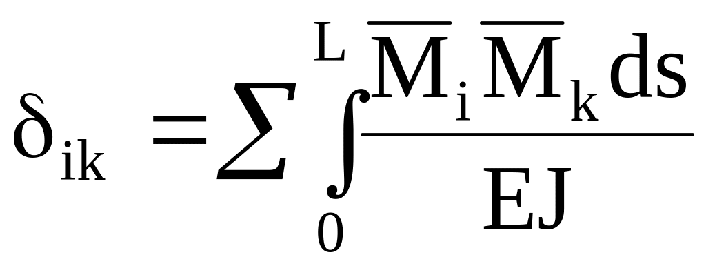 Статически неопределимые системы – системы, силовые факторы в элементах которых не могут быть определены только из уравнений равновесия твердого тела. В таких системах число связей больше, чем необходимо для равновесия. Степень статической неопределимости: S = 3n – m, n – число замкнутых контуров в конструкции, m – число одиночных шарниров (шарнир, соединяющий два стержня, считается за один, соединяющий три стержня – за два и т.д.). Метод сил – в качестве неизвестных принимают силовые факторы. Последовательность расчета: 1) устанавливают степень статич. неопределимости; 2) путем удаления лишних связей заменяют исходную систему статически определимой – основной системой (таких систем может быть несколько, но при удалении лишних связей не должна нарушаться геометрическая неизменяемость конструкции); 3) основную систему загружают заданными силами и лишними неизвестными; 4) неизвестные усилия должны быть подобраны так, чтобы деформации исходной и основной систем не отличались. Т.е. реакции отброшенных связей должны иметь такие значения, при которых перемещения по их направлениям = 0. Канонические уравнения метода сил: