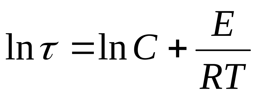 Из выражения 2 следует, что между lnτ и 1/Т существует линейная зависимость (рисунок 3), которая была экспериментально подтверждена для большинства исследованных ВВ.