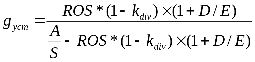 Коэффициент устойчивого роста показывает максимальный темп роста, который предприятие может поддерживать без увеличения финансового рычага. Его значение может быть вычислено по формулам (3) или (4):