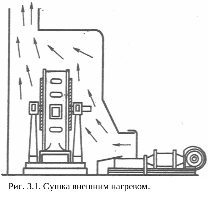 Рис. 3.5. Сушка потерями в меди от постороннего источника постоянного или однофазного тока.