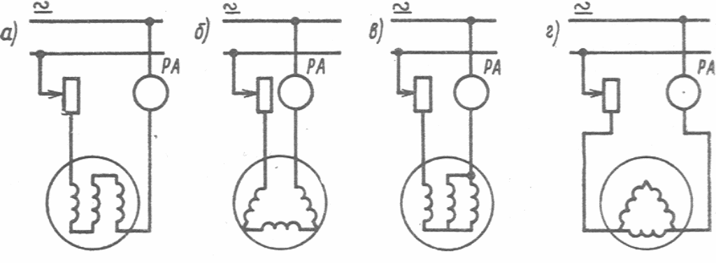 Если выведены все шесть концов обмотки, ток пропускается последовательно через обмотки всех фаз (рис. 3.5, а, б). Если выведены только три конца обмотки, то обмотки соединяются, как показано на (рис. 3.5, в, г), с переключением фаз каждый час. Отключение производят постепенным снижением подводимого напряжения. Обмотка ротора высыхает и не требует дополнительной сушки.