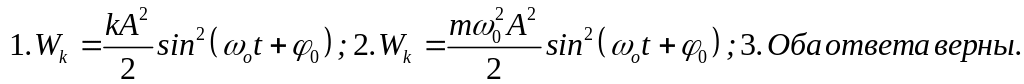 35. Гармонічне коливання відбувається за законом . Тоді кінетична енергія такого коливання має вигляд: