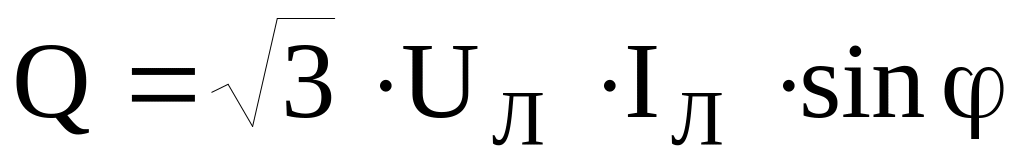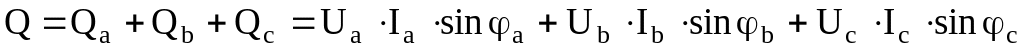 Реактивная мощность трехфазной цепи равна сумме реактивных мощностей отдельных фаз: