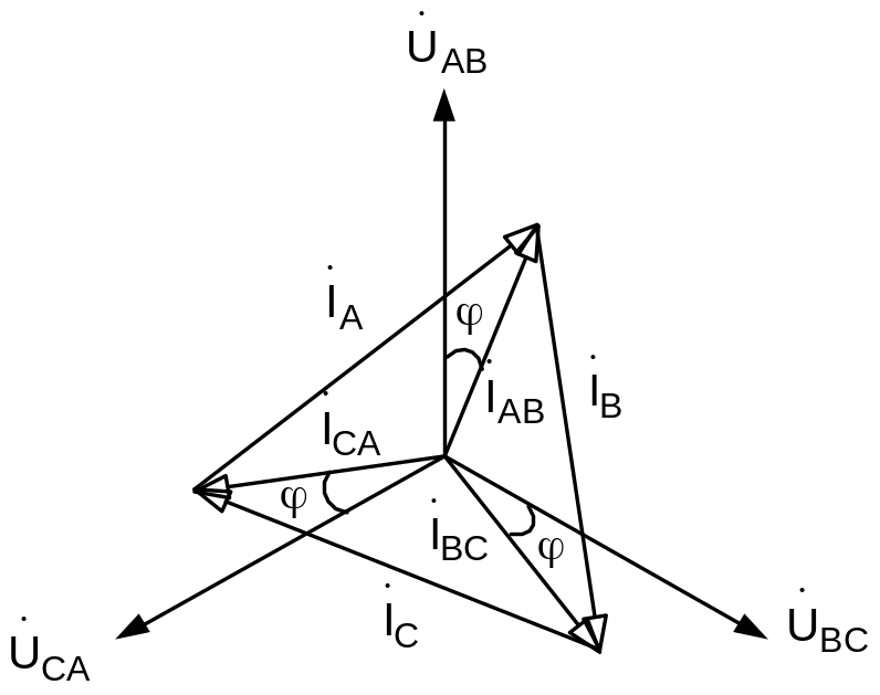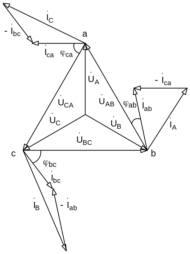 Линейные токи определяются по первому закону Кирхгофа для узлов а, b, c: