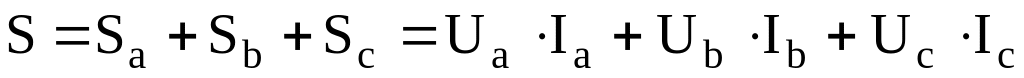 Активная мощность трехфазной цепи равна сумме активных мощностей потребляемых каждой фазой нагрузки: