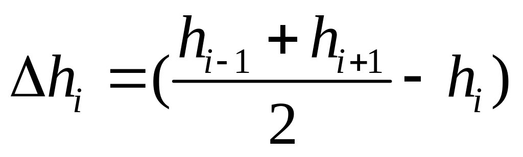 Обработка результатов: по данным нивелирования вычисляют относительные отметки точек поверхности покрытия в местах разметки. По относительным отметкам точек определяют отклонение этих точек от прямой линии, проходящих через предыдущую и последующую точки по формуле