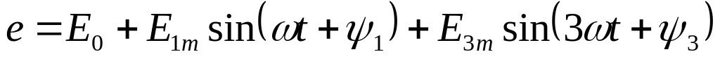 На практике для расчета несинусоидальных режимов используют не бесконечные, а усеченные ряды Фурье, ограничиваясь первыми их (N +1)-членами. При этом некоторую ЭДС (рис. 1.30, а) можно представить в виде последовательно соединенных (N + 1) ЭДС (рис. 1.30, б):