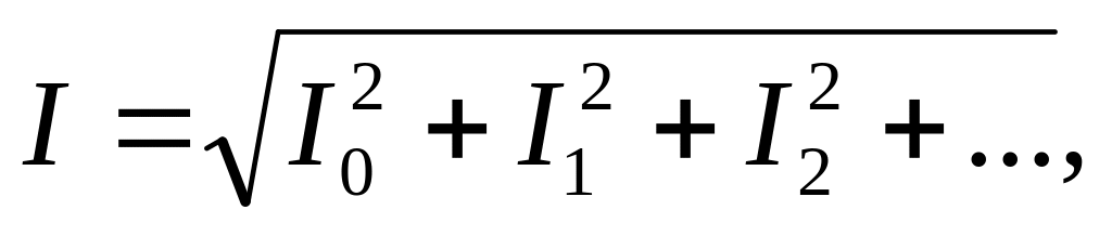 Можно показать, что действующее значение периодического несинусоидального тока, напряжения, ЭДС равно корню квадратному из суммы квадратов постоянной составляющей и действующих значений всех гармоник