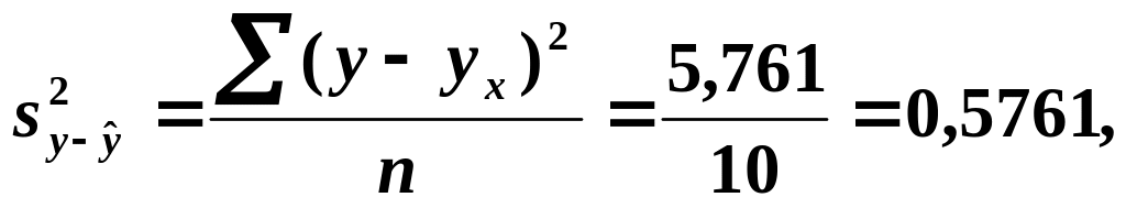 Оценим адекватность регрессионной модели yx=2,02+0,796x, выражающей зависимость между производительностью и электровооруженностью труда, с помощью F-критерия Фишера по формулу: