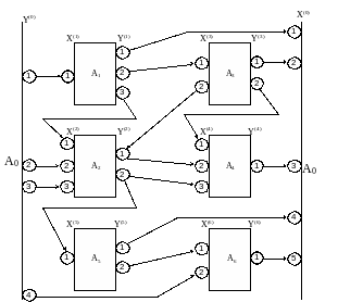 Обмен информации А–схемы с внешней средой происходит через агрегаты, которые называют полюсами. Различают входные полюсы, на которые поступают X–сообщения и выходные полюсы – это агрегаты, выходная информация которых представляет Y–сообщения.