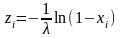 Так как (1-xi) - случайная равномерно распределенная в интервале [0,1] величина, то