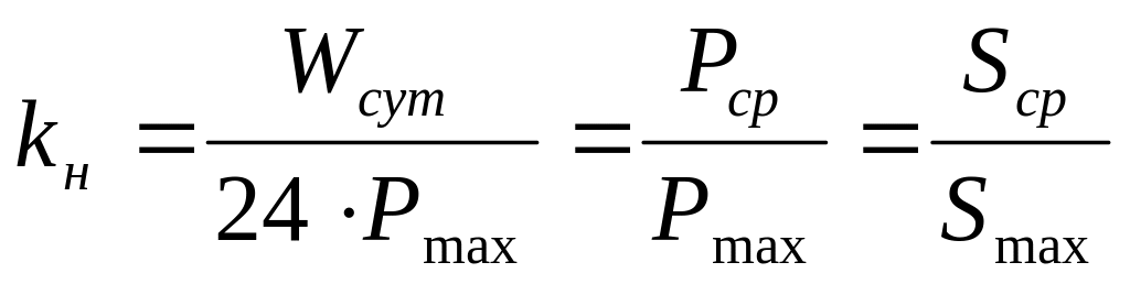 По зимнему суточному графику вычисляют коэффициент нагрузки (заполнения графика)