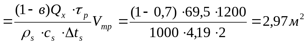 Wи = (3,6×Qх)/(ρw×cw×Δtw)= (3,6×69500)/(1000×4,19×2)=29,8 м³/ч