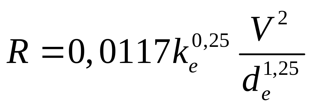 R – питомі втрати тиску по довжині каналу, Па/м, які для турбулентного режиму можна визначити за формулою