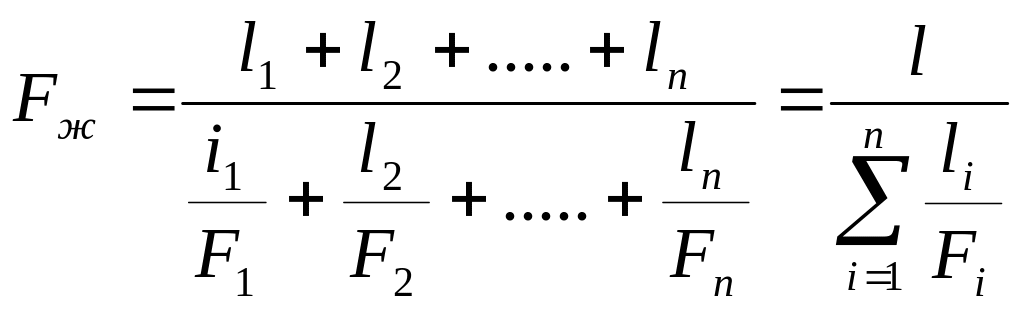 где l1, l2, ln – длины подучастков, м; F1, F2, Fn – площади их живого сечения, м2.