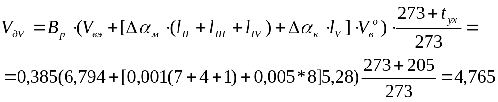 где lV, м – длина V участка (кирпичного газохода), к=0,005/м – величина присосов холодного воздуха в кирпичные газоходы на 1 метр длины.