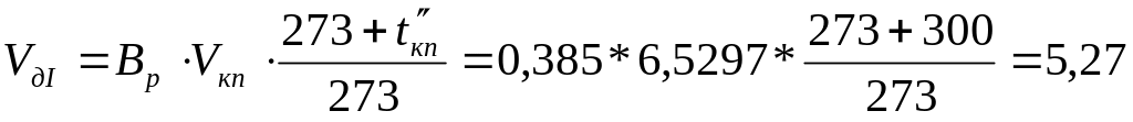 Объемный расход продуктов сгорания в водяном экономайзере: