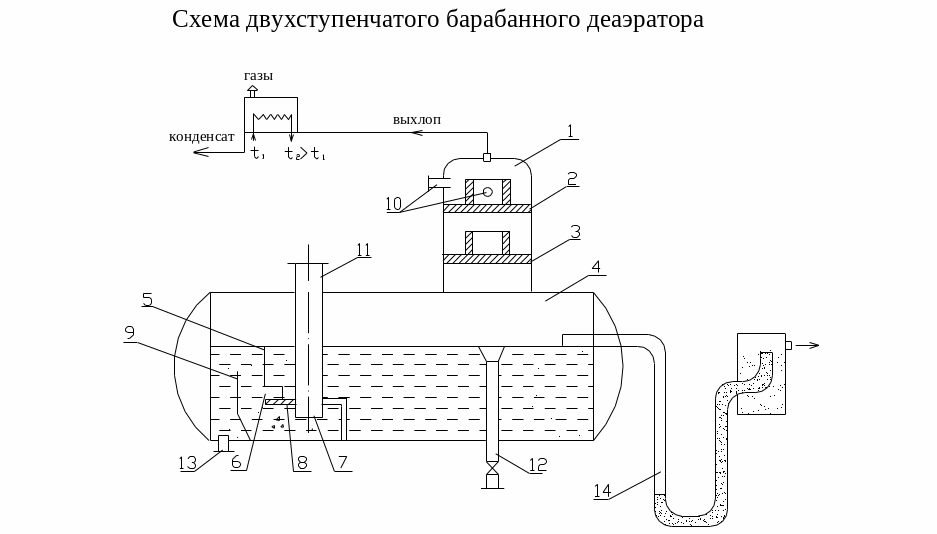 необходимо, чтобы парциальное давление газа над водой равнялось нулю. Это состояние может быть достигнуто при кипении воды, т.е. когда парциальное давление паров воды повысится до давления, поддерживаемого в деаэраторе, а температура воды станет равной температуре насыщения. Процесс деаэрации затормозится, если переходящие в пар газы не будут вместе с паром постоянно отводится из зоны, где происходит их десорбция из воды.