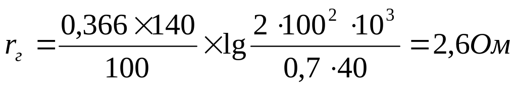 Согласно ПУЭ сопротивление заземляющего устройства на стороне 0,4 кВ не должно превышать 4 Ом, т.к. ЗУ будет общим для напряжений 6 кВ и 0,4 кВ, то расчёт ведём из условия: