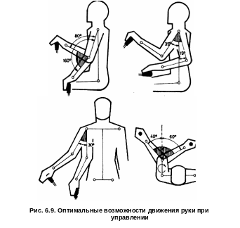 Рекомендуемые углы сгибания руки в локтевом суставе или предплечье обеспечивают физиологически правильное направление движения руки при манипуляции, например, рычажной рукояткой. При сгибании и разгибании рук в пределах выше рекомендуемого уровня необходимо дополнительное усилие.