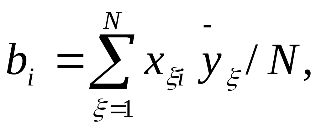 где bi - коэффициент полинома, соответствующий i-фактору; ξ=1,…,N - номера опытов; xξi - значение безразмерного фактора в матрице планирования, соответствующего ξ-строке и i-столбцу; yξ - значение функции отклика в ξ-опыте.