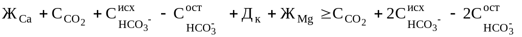 При соблюдении условия (10)происходит выделение СаСО3, но не происходит выделения из воды ионов Мg2+.