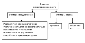 Эти пять факторов экономического роста называются факторами предложения. Именно они обеспечивают физический рост производства. Только доступность большего количества и качества ресурсов, как людских, так и материальных, включая технологический потенциал, позволяет увеличивать производство реального продукта. Однако для экономического роста имеют значение и факторы, влияющие на изменение спроса: ценовые и неценовые факторы.