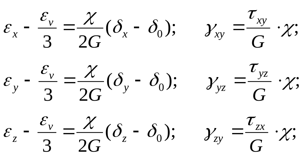 В общем случае уравнения (уравнения Генки), связывающие деформации и напряжения в пластичных телах, имеют вид: