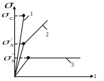 В зависимости от вида функции напряжения от деформации различают хрупкие – 1, упрочняющиеся – 2 и идеально упругопластические – 3 тела (рис 1.)